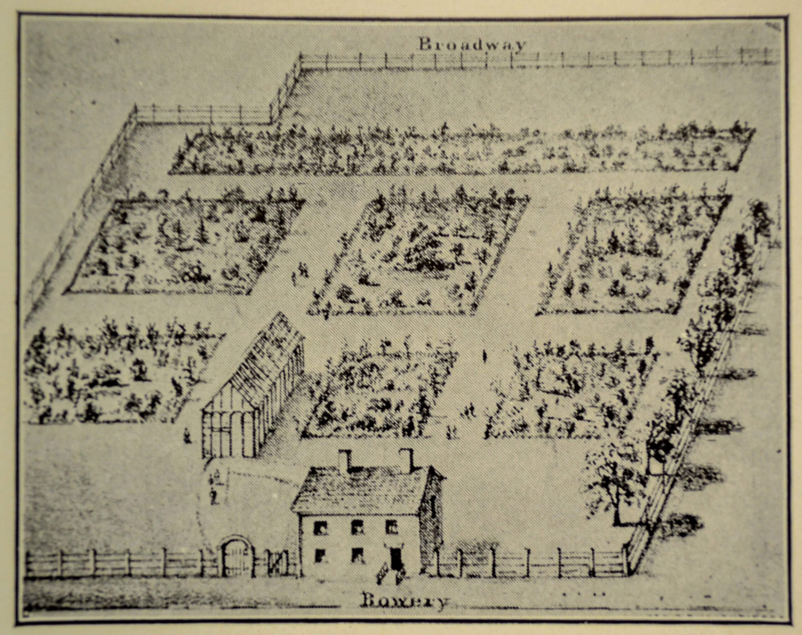 Sometime during the first half of the 1700s, a spring of fresh water between Baxter and Mulberry streets began to attract popular attention. The water was so popular for the making of tea that it was known as the Tea Water Pump. It became a regular landmark and is shown on maps and referenced in real estate deeds of the time. Other tea water pumps were located on Chatham Street and at Knapp’s spring near Tenth Avenue and Fourteenth Street.