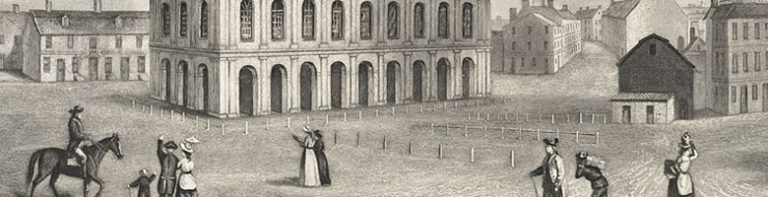 Following the arrival of the Dartmouth, the first large-scale organized meeting to discuss the “tea crisis” occurred on Monday, November 29, 1773 at Faneuil Hall. By this time, Boston had become a hotbed of dissent and radicalism, and thousands of men, women, and children gathered from Boston and surrounding towns to meet at Faneuil Hall. The Boston Committee of Correspondence and the Sons of Liberty organized the meeting, both of whom were under the leadership of Samuel Adams. The gathering attracted so many of the concerned citizenry that the meeting had to be quickly relocated to the Old South Meeting House because Faneuil Hall could not accommodate the masses of people. Old South Meeting House was the largest public building in Boston at the time and thus became the central meeting place of the Patriot movement.