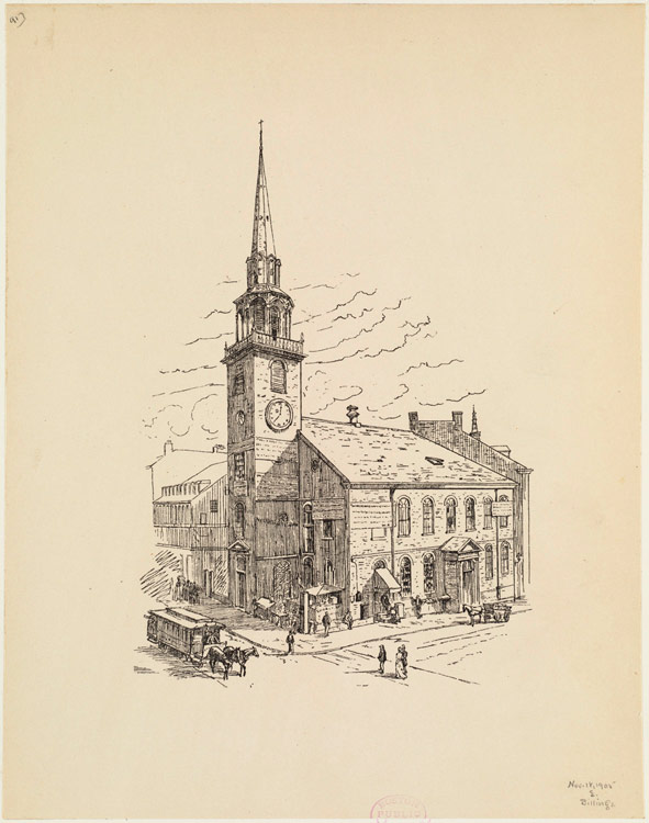 In December, tensions grew to an all-time high with the arrival of the Eleanor and Beaver. Under the order of Thomas Hutchinson, Lieutenant Governor and Chief Justice of Massachusetts, no vessel could leave Boston Harbor without a pass. As the deadline to pay the tax on the Dartmouth’s tea fast approached, another large-scale meeting to discuss the “tea crisis” was planned for Tuesday, December 14 at the Old South Meeting House. Prior to this, smaller meetings had been held by the Sons of Liberty at the Old South Meeting House almost daily since November 30 to discuss the “tea crisis”. The Sons of Liberty planned a course of action of the utmost secrecy to deal with the “tea crisis” if the issue could not be resolved diplomatically through negotiations. A pamphlet was distributed throughout Boston to announce and call forth the concerned citizenry to meet at 10:00 in the morning on December 14 at the Old South Meeting House, “Friends! Brethren! Countrymen! The perfidious act of your reckless enemies to render ineffectual the late resolves of the body of the people, demands your assembling at the Old South Meeting House, precisely at ten o’clock this day, at which time the bells will ring.” Additionally, news of the meeting was spread to towns in close vicinity to Boston, and towns throughout Massachusetts sent proclamations of support. Samuel Adams called upon the Committees of Correspondence from Massachusetts for support, calling them to be in “readiness in the most resolute manner to assist this Town in their efforts for saving this oppressed country.”